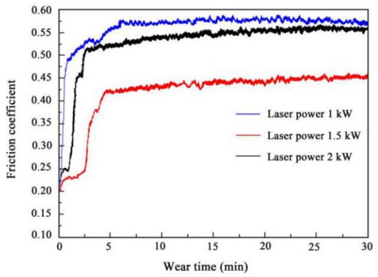 - The Ni/TiN coating deposited at 1.5 kW processed an average shear strength of 802 MPa, which was significantly higher than the shear strengths of the other coatings. The shear displacements of the Ni/TiN coatings obtained at 1, 1.5, and 2 kW were 0.68, 0.54, and 0.61 mm, respectively. The Ni/TiN coating produced at 1.5 kW had the lowest friction coefficient of all coatings, with an average value of only 0.44. Additionally, the Ni/TiN coating deposited at 1.5 kW had the best wear resistance of the three coatings.