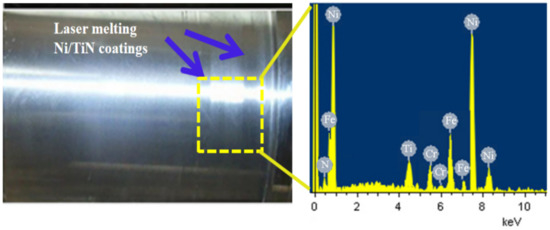 - The Ni/TiN coating was tightly combined with the shaft after grinding. Ni, Ti, N, Cr, and Fe elements appeared on the surface of the shaft of the ESP, indicating that the LMD technology had successfully repaired the shaft of the ESP.