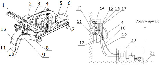Figure 5 is a spraying robot system 2D model design where we see the structure analysis diagram of the spraying robot that can recover the paint mist, respectively showing the internal structure of the spraying robot, the cutting diagram of the recovery cover, and the equipment construction diagram of the wall climbing operation.