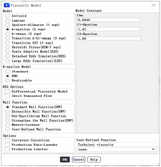 In this study, if paint is used as the fluid of study then viscous is chosen. The Edit Viscous Model dialog box appears, and although the Reynolds number of the flow in the inner cavity of this paper is small for laminar flow, the k-epsilon model is used for good convergence and small computational effort, and the RNG model is selected. The result of the setup is shown in