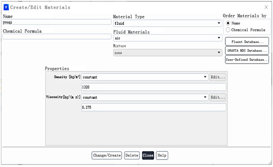 To edit the fluid material selection, we clicked on the material and created the fluid. The name defaults to air, so we changed air to youqi for easy identification. Then, we set the density and viscosity of the fluid. The density is known to be