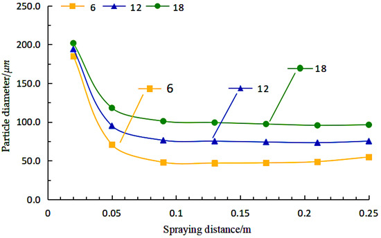 The trend of the coating particle diameter at different pressures and different spraying distances is summarized in