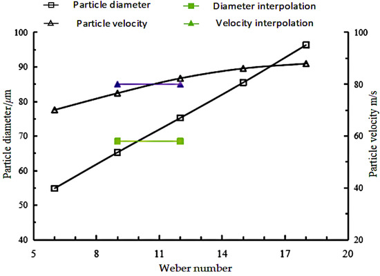 (1) The larger the critical Weber number, the more difficult the paint atomisation. According to the interpolation analysis of the experimental results, we set the critical Weber number of 9.97. With the increase in pressure, the atomisation diameter of the paint particles decreases; with the increase in atomisation pressure, the atomisation speed of the paint particles increases; with the increase in atomisation pressure, the collision kinetic energy of the paint particles increases. This means that, as the atomisation pressure increases, the atomisation effect of the paint becomes better.