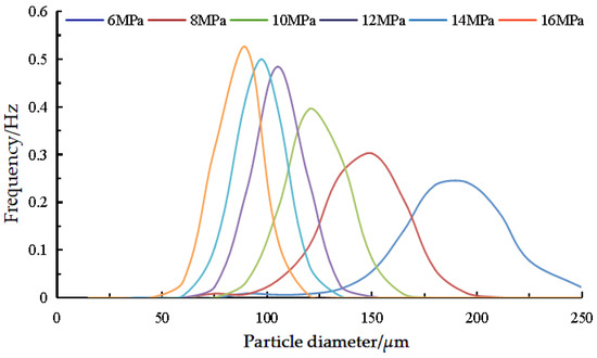 The distribution of particle diameter at 6–16 MPa is counted as shown in