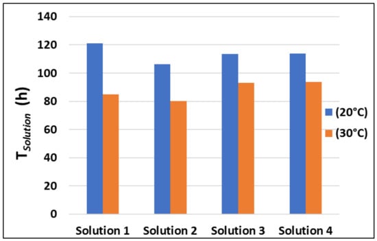 The corresponding data for each coating is listed in Table 12. Figure 12 shows the total time required for the painting of the whole monopile (TSolution) with Solutions 1–4 at two different temperatures.