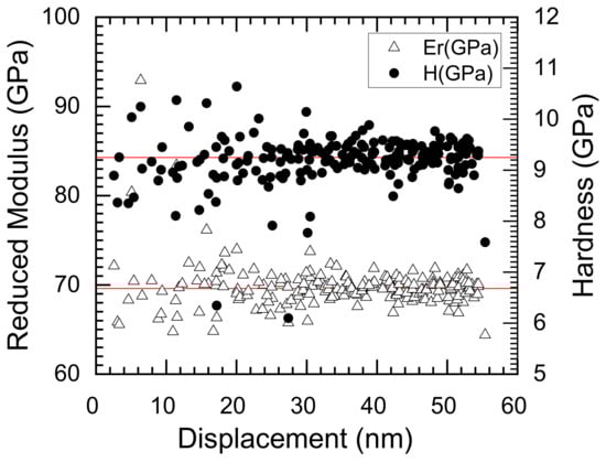 - Oliver, W.C.; Pharr, G.M. Measurement of hardness and elastic modulus by instrumented indentation: Advances in understanding and refinements to methodology. J. Mater. Res. 2004, 19, 3–20. [Google Scholar] [CrossRef]