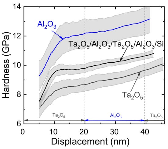 - Tapily, K.; Jakes, J.E.; Stone, D.S.; Shrestha, P.; Gu, D.; Baumgart, H.; Elmustafa, A.A. Nanoindentation investigation of HfO2 and Al2O3 films grown by atomic layer deposition. J. Electrochem. Soc. 2008, 155, 545–551. [Google Scholar] [CrossRef]