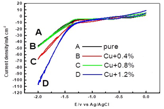 2.5. Electrochemical Behavior and Corrosion Resistance of Cu-MWCNT Nanocomposites