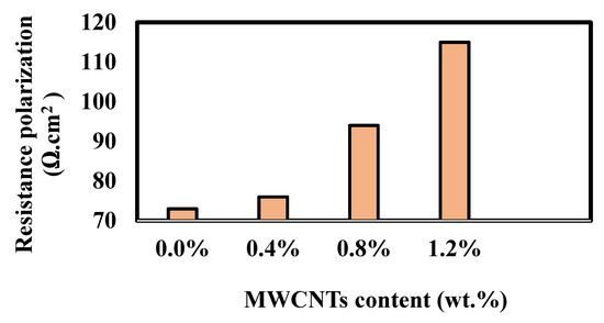 - The maximum resistance polarization was 115 Ω·cm2 for the 1.2 wt.% MWCNTs.