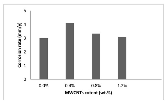 - The rate of corrosion declined for the 1.2 wt.% MWCNTs and reached its lowest value of 3.08 mm/year.