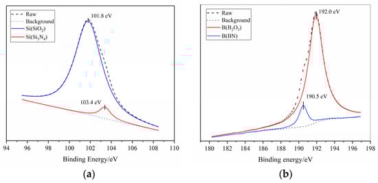 XPS spectra of the worn surface of the SN20 pin against the PEEK disc in artificial seawater: (a) Si2p; (b) B1s.