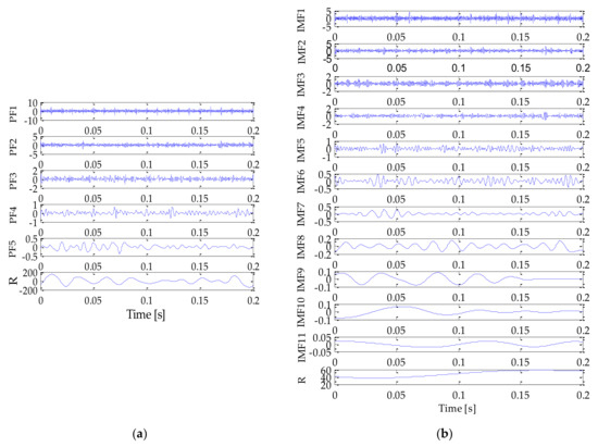 LMD (a) andEMD (b) decomposition result.