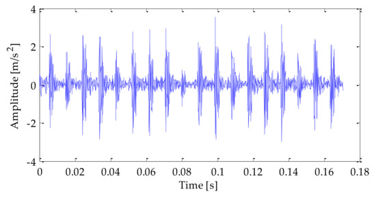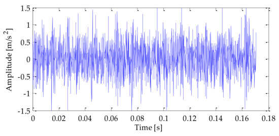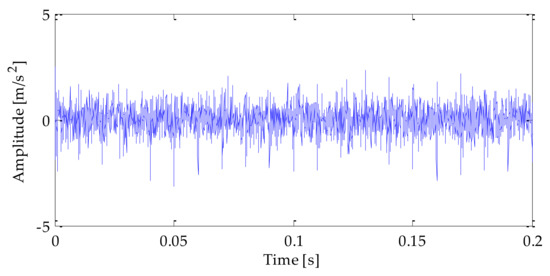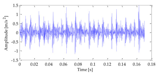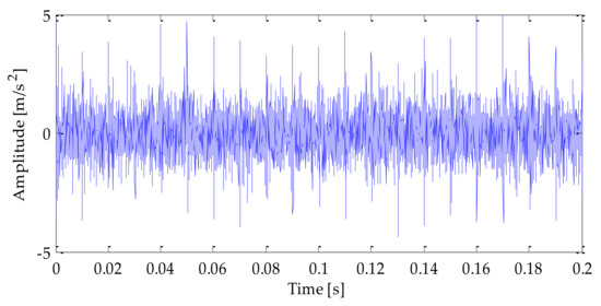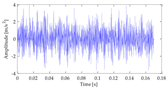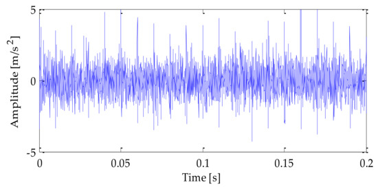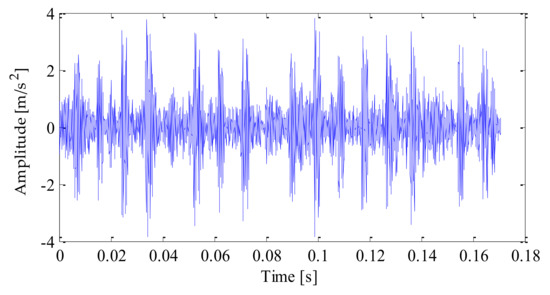 The time–domain waveform of the original signal is shown in Figure 4. After adding noise, the time–domain waveform and frequency–domain waveform of the mixedsignal after adding noise is shown in Figure 5 and Figure 6. Analyzing the above diagrams showsthat most of the impact signal features were covered up under the interference of background noise, which brings some difficulty to the fault feature extraction.