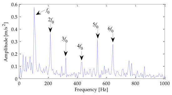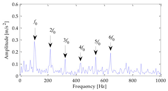 Finally, the denoised signal was demodulated by the Hilbert envelope, and then the corresponding fault features were extracted. To compare the experimental effects of different methods, LMD–RobustICA, EMD–RobustICA, and EEMD–RobustICA were used to denoise the signal. Then Hilbert envelope spectrum was generated.The envelope spectra obtained based on the above three methods are shown in Figure 29, Figure 30, Figure 31 and Figure 32, respectively. After analyzing the above four graphs, it can be seen that from the envelope spectrum of the above methods, the one-time frequency of the fault frequency, as well as the two-time frequency and five-time frequency of the fault frequency could be extracted. However, the amplitude of the fault frequency in the envelope spectrum obtained based on the method proposed in this paper was relatively high, especially the fundamental frequency amplitude. Therefore, the effect of using the proposed method to extract fault features was more significant.