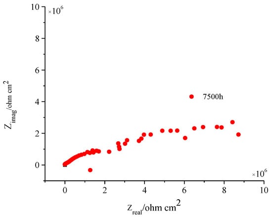 Nyquist chart of inorganic zinc-rich coating after being salt sprayed for 7500 h.