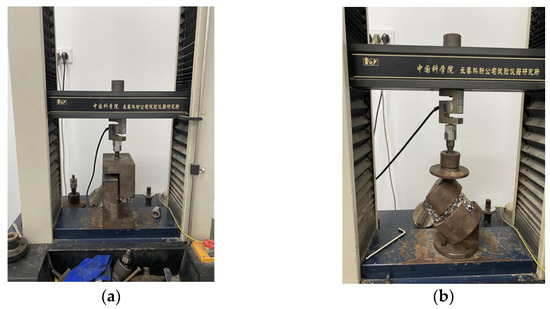 The direct shear and oblique shear apparatus: (a) the direct shear apparatus; (b) the oblique shear apparatus (Chinese in the figure: Changchun Kexin Company Test Instrument Research Institute, Chinese Academy of Sciences).
