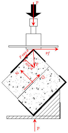The stress state of the specimen under oblique shear is shown in Figure 6.
