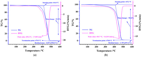 Thermal stability analysis of (a) SBS modifier and (b) GQDs/SBS composite modifier.