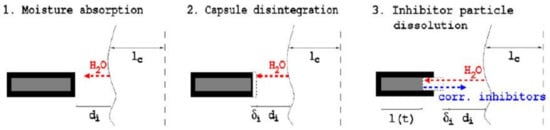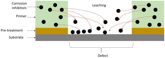 Schematic representation of the corrosion inhibitors leaching from the primer.