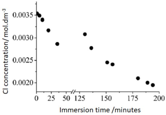 It was also reported by Vanderkloet et al. that the corrosion protection by CCC film could be attributed to several factors including the inhibition of oxygen reduction kinetics, an increase in film resistance, and the presence of residual unreacted Cr(VI) in the protective film [14,15]. This film can act as a reservoir in which the unreacted Cr(VI) pigments can be reduced when the aluminum surface is exposed via film cracks or defects, thereby regenerating the protective oxide film. This phenomenon was demonstrated by Scholes, Furman and Lee, who studied the kinetics of release of chromate (SrCrO4) from polyester primer immerged in 5% (w/v) NaCl at different times [16,17,18,19]. They reported an increase in chromate conversion with the time of immersion, and highlighted the inhibiting effect on corrosion when the chromate was released from the coating of a defect. However, they also showed that once the corrosion was initiated, the presence of chromates had no influence on the corrosion, but corrosion did not occur if the chromates were initially present in the solution.