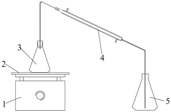 Schematic diagram of distillation separation plant (1—electric furnace; 2—asbestos net; 3,5—cone bottle; 4—condenser tube).