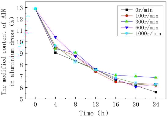 The modified contents of AlN in aluminum dross under different rotational speeds (60 °C).