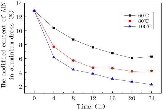 The modified contents of AlN in aluminum dross under different temperatures and speeds (600 r·min−1).