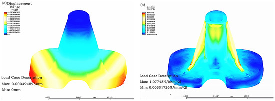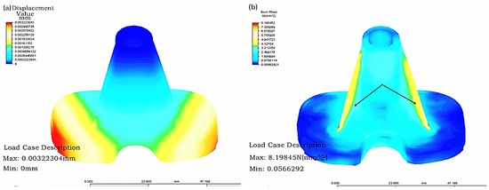 Figure 6. Optimization results of tibial implant: (a) Displacement distribution; and (b) Stress distribution.