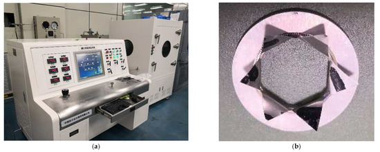 A bursting disc is a diaphragm between a rocket propellant and a rocket engine, which is mainly used to isolate the propellant of the engine and realize the pre-packaging of the propellant [1]. When the engine is working, the high-pressure gas produced by the initiating explosive device breaks through the diaphragm to start the engine. Therefore, the ventilation rate of bursting discs after breaking has an important influence on whether the rocket engine can start smoothly and on the starting effect [2]. The rupture effect of the metal diaphragm is realized by engraving a specially shaped microgroove on its surface. Only by ensuring the depth uniformity of the microgrooves on the diaphragm can the rupture pressure of the diaphragm be consistent [3]. However, the microgroove on the bursting disc is mainly machined by mechanical processing methods or lithography [4], which cannot guarantee the uniformity of the microgroove depth (mechanical methods can reach only tens of microns) or have a complex process flow (low efficiency). Moreover, there is stress deformation in the mechanical process of processing, which leads to problems such as a large deviation in the microgroove fracture pressure and a tendency to cause an explosion [5]. Therefore, in order to solve the above problems and improve the starting performance of rocket engines, it is necessary to study a new processing method for microgrooves on bursting discs.
