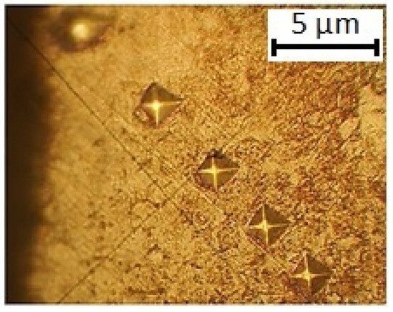 Samples from selected types of steel were exposed to mechanical stress due to cold plastic deformation. After, hardness was determined by the microhardness tester “PMT-3” (“Standard-M”, Zaporizhzhia, Ukraine) with the following parameters: load range 19.6 mN–4.9 N; magnification ratio—×130, ×500, and ×800.