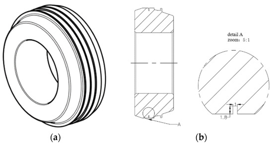 Annular narrow slot geometric model. (a) Integral structure of winding wheel; (b) Narrow slot structure and magnification diagram.