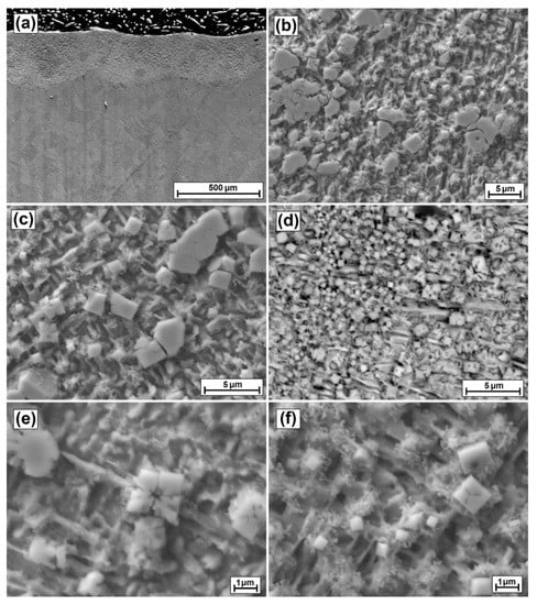 - Bartkowska, A.; Bartkowski, D.; Piasecki, A.; Jurči, P. Influence of laser cladding parameters on microstructure, microhardness, chemical composition, wear and corrosion resistance of Fe-B composite coatings reinforced with B4C and Si particles. Coatings 2020, 10, 809. [Google Scholar] [CrossRef]