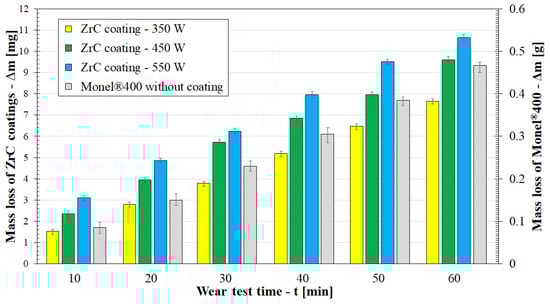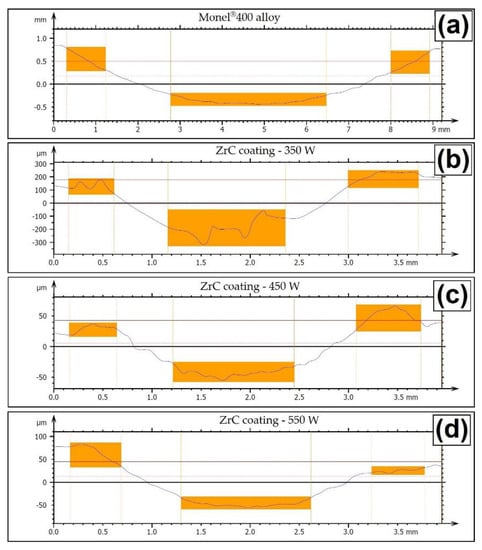 | ZrC coating 550 W | 3.19 × 10−7 | −9.08 × 10−1 |