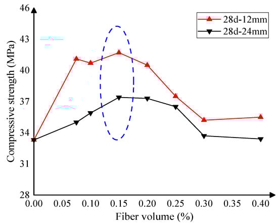 The 28d compressive strength of the BRFC with different fiber lengths.