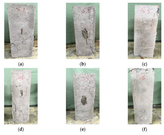 To further study the effect of fiber volume content on concrete compressive strength under different fiber lengths, we added BFRC specimens with a fiber length of 24 and fiber volume contents of 0, 0.075%, 0.10%, 0.15%, 0.20%, 0.25%, 0.30%, and 0.40% on the basis of ST1–ST13. Each case also contains three specimens. Then, based on the standard for the test methods of the mechanical properties of ordinary concrete (GB/T 50081-2002) [24], the 28d compressive strength test is carried out on the cube concrete specimens with different fiber lengths and fiber volume contents, respectively. From the compressive failure modes of all specimens, the concrete specimens made an obvious cracking sound when they were damaged. The integrity of the BRFC specimen shows good resistance to damage regarding the rare cracking phenomenon. For the BFRC specimen that fails, the failure mode is brittle failure, although the characteristics of ductility are seen. The failure morphology of the BFRC specimens does not vary significantly with different fiber volume contents.