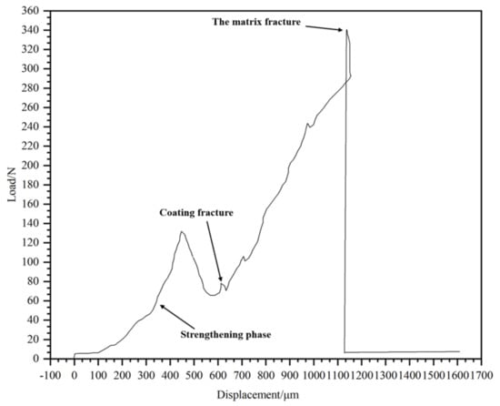 Figure 6 shows that when the samples were loaded with 10 N, 50 N, 100 N and 150 N at 766 °C, no crack propagation on the coating surface was observed. Then, when further loaded to 250 N, the widening and propagation of cracks on the coating surface was observed, especially at 300 N. This observation showed that microcracks can expand under coupled high-temperature and load conditions. As can be seen in Figure 5 and Figure 6, crack propagation when loaded to 340 N resulted in the fracture failure of the specimens.