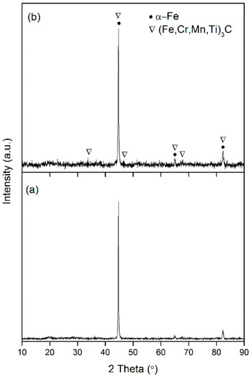 Considering the great difference in density between graphite and 20CrMnTi powders, we used mechanical alloying to homogeneously disperse graphite in milled mixtures. Mechanical alloying is one of the most attractive methods to fabricate nanostructured powders with homogeneous mixing [17,18,19]. It is also expected that the milled mixtures contain nanosized crystallites and have active sintering abilities.