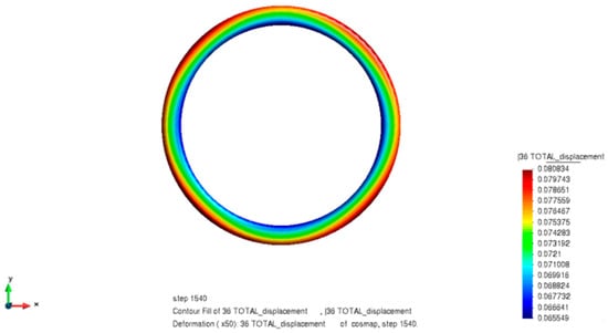 The effect of temperature field distribution on deformation is shown in Figure 14. The bearing outer ring has occurring non-axisymmetric deformation.