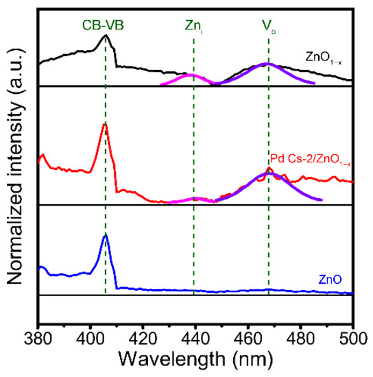 | Type of Oxygen | ZnO | ZnO1−x | Pd Cs-2/ZnO1−x |