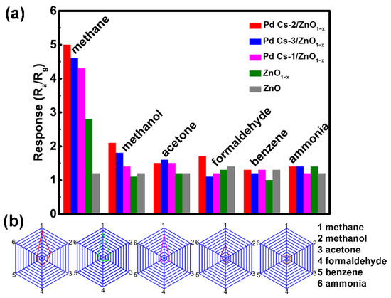 - Wang, Y.; Meng, X.; Yao, M.; Sun, G.; Zhang, Z. Enhanced CH4 sensing properties of Pd modified ZnO nanosheets. Ceram. Int. 2019, 45, 13150–13157. [Google Scholar] [CrossRef]