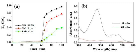 - Shah, A.A.; Chandio, A.D.; Sheikh, A.A. Boron doped ZnO nanostructures for photo degradation of methylene blue, methyl orange and rhodamine B. J. Nanosci. Nanotechno. 2021, 21, 2483–2494. [Google Scholar] [CrossRef]