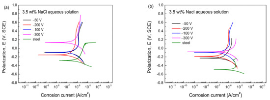 (2) The potentiodynamic polarization test, which was conducted by conventional three-electrode glass cell in the 3.5 wt% NaCl aqueous solution. The samples, platinum wire, and saturated calomel (SCE) were used as the working electrode, auxiliary electrode, and reference electrode, respectively. The scanning rate was 1 mV/s.