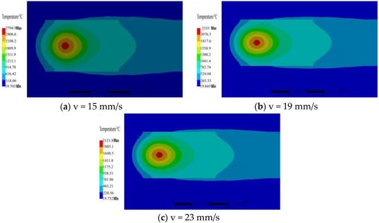 Cloud map of temperature field distribution under different scanning speeds.