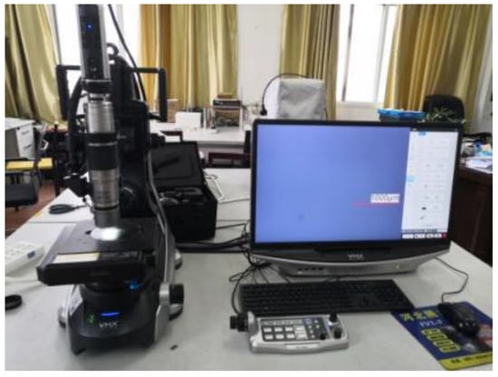 The sample observation equipment adopts an ultra-deep microscope (modelVHX-7000) (Figure 10), the section of Inconel 718 laser cladding is cut along the vertical direction of the cladding layer by wire cutting equipment, and then the section is ground and polished with sandpaper. Finally, the sample was corroded with 4% nitric acid alcohol for about 30 s, and the surface of the sample was wiped with alcohol and dried. The cross-section of the cladding layer was observed using a super-depth-of-field microscope. The cladding material is Inconel718 powder (Figure 11), and the powder is sealed and dried to ensure that it is dry, the cladding layer is Inconel718 alloy powder, the powder particle size is 40–106 µm, the bulk density is 4.1–4.6 g/cm3, and the powder uniformity is high. The chemical compositions of the substrate and powder are shown in Table 3.