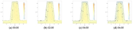 As can be seen from Figure 10, the sunshine was brightest from 00:00 on 16 June to 00:00 on 17 June 2017. Starting from 00:00, data were collected every 4 h to complete the isotherm chart, as shown in Figure 11.