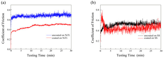 | Uncoated NiTi | −0.18 ± 0.02 | 23.72 ± 4.99 |