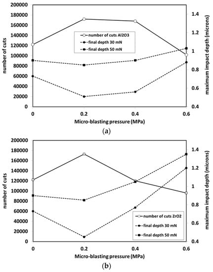 - Bouzakis, K.-D.; Flocke, F.; Skordaris, G.; Bouzakis, E.; Geradis, S.; Katirtzoglou, G.; Makrimallakis, S. Influence of dry micro-blasting grain quality on wear behavior of TiAlN coated tools. Wear 2011, 271, 783–791. [Google Scholar] [CrossRef]