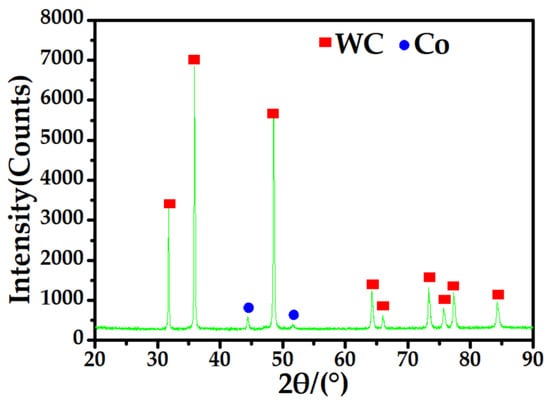 The X-ray diffraction (XRD) patterns of conventional WC-17Co powders.