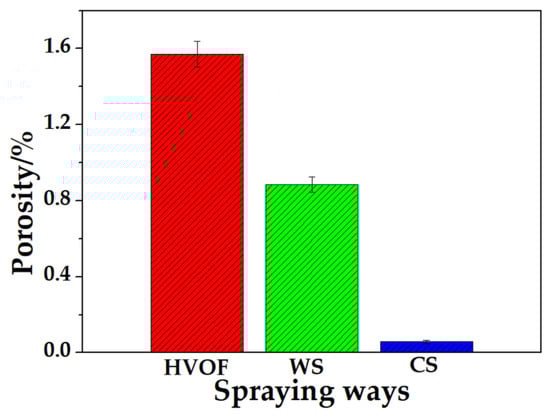 Porosity of WC-17Co coatings formed by various spraying methods.