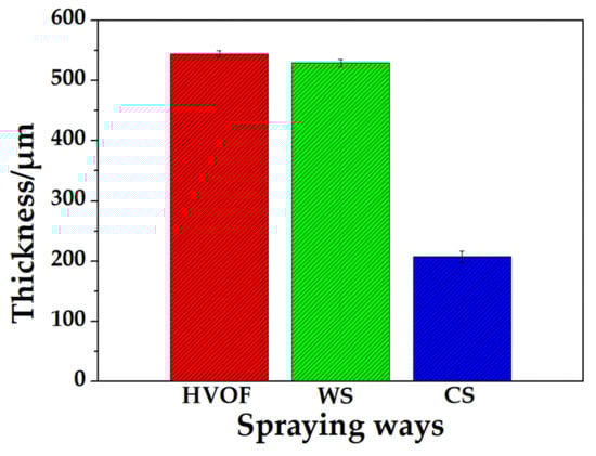 Thickness of WC-17Co coatings formed by various spraying methods.